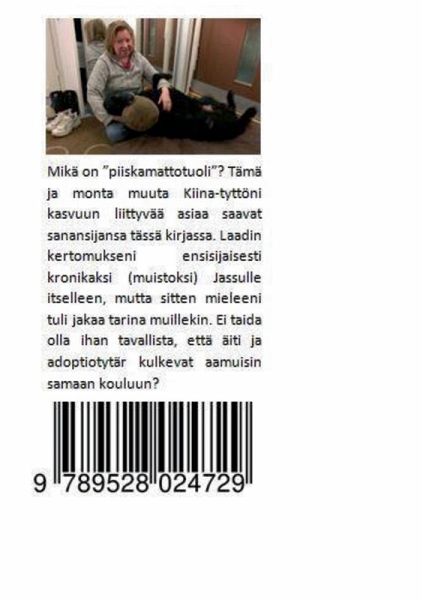 Mikä on PIISKAMATTOTUOLI? Tähän ja moniin muihin lapsen kysymyksiin löytyy vastaus tästä tarinastani, jossa kerron adoptiotyttäreni kasvusta ja omasta kasvustani siinä ohessa. Meidän perheemme erikoisuus on, että työskentelen opettajana samassa koulussa, jossa Jassu suoritti peruskoululuokkansa 7-9. Hänen ikätoverinsa kasvattivat minua varmaan enemmän kuin minä heitä.