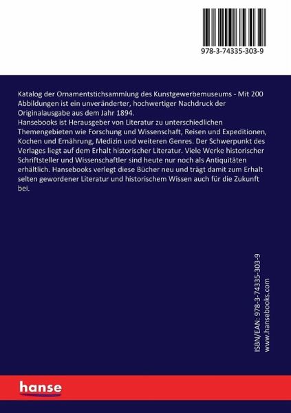 Katalog der Ornamentstichsammlung des Kunstgewerbemuseums - Mit 200 Abbildungen ist ein unveränderter, hochwertiger Nachdruck der Originalausgabe aus dem Jahr 1894.