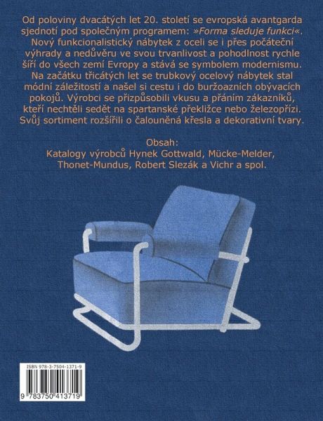 Od poloviny dvacatych let 20. století se evropska avantgarda sjednoti pod spolecnym programem: Forma sleduje funkci. Novy funkcionalisticky nabytek z oceli se i pres pocatecni vyhrady a neduveru ve svou trvanlivost a pohodlnost rychle siri do vsech zemi Evropy a stava se symbolem modernismu. Na zacatku tricatych let se trubkovy ocelovy nabytek stal modni zalezitosti a nasel si cestu i do burzoaznich obyvacich pokoju. Vyrobci se prizpusobili vkusu a pranim zakazniku, kteri nechteli sedet na spartanske preklizce nebo zelezoprizi. Svuj sortiment rozsirili o calounena kresla a dekorativni tvary. Obsah: Katalogy vyrobcu Hynek Gottwald, Mücke-Melder, Thonet-Mundus, Robert Slezak a Vichr a spol.