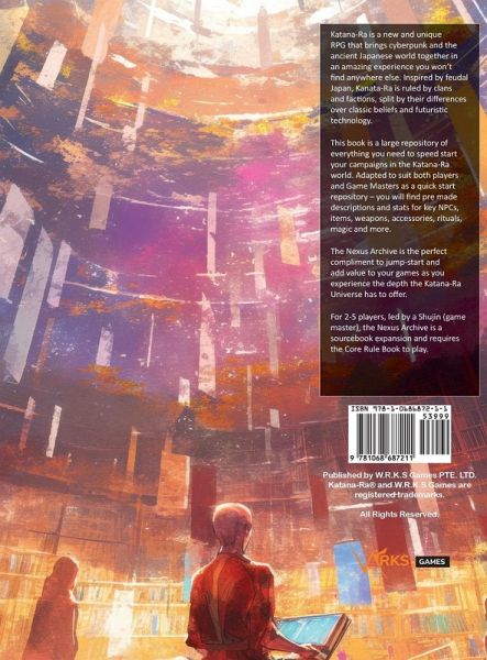 Katana-Ra is a new and unique RPG that brings cyberpunk and the ancient Japanese world together in an amazing experience you won't find anywhere else. Inspired by feudal Japan, Kanata-Ra is ruled by clans and factions, split by their differences over classic beliefs and futuristic technology. A large repository of everything you need to speed-start your campaigns in the Katana-Ra world. Adapted to suit both players and Game Masters as a quick start repository - you will find pre-made descriptions and stats for key NPCs, items, weapons, accessories, rituals, magic, and more. The Nexus Archive is the perfect complement to jump-start and add value to your games as you experience the depth the Katana-Ra Universe has to offer. For 2-5 players, led by a Shujin (game master), the Nexus Archive is a sourcebook expansion and requires the Core Rule Book to play.