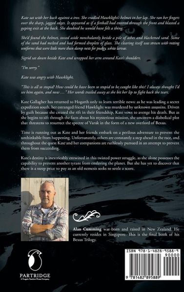Kate Gallagher has returned to Hogarth only to learn terrible news: as he was leading a secret expedition south, her estranged friend Hawklight was murdered by unknown assassins. Driven by guilt because she created the rift in their friendship, Kate vows to avenge his death. But as she begins to sift through the facts about his mysterious mission, she uncovers a diabolical plot that threatens to resurrect the spectre of Varak in the form of a new overlord of Bexus. Time is running out as Kate and her friends embark on a perilous adventure to prevent the unthinkable from happening. Unfortunately, others are constantly a step ahead in the race, and throughout the quest Kate and her companions are ruthlessly pursued in an attempt to prevent them from succeeding. Kate's destiny is inextricably entwined in this twisted power struggle, as she alone possesses the capability to prevent another tyrant from enslaving the planet. But she has yet to discover that there is a steep price to pay as an old nemesis seeks to settle a score.
