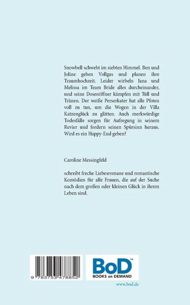 Das Buch ist wie die anderen aus dieser Serie einfach wunderschön. Man muss Snowbell, Bluebell sowie ihre Dosis und deren Freunde einfach lieben. Snowbell ist zwar nicht so gebildet wie Bluebell, doch dafür hat er sein Herz am rechten Fleck. Als er erfährt, dass es wieder einen toten gibt, ist Snowbell schon in den Startlöchern, denn schließlich will er den Fall lösen. Den Papagei den der Tote hinterlässt nehmen Bein und Jana. Nach der Hochzeitsreise hatten Ben und Jana auch eine Katze und eine sehr vornehme noch dazu. Bluebell gerate gleich mit ihr aneinander. Snowbell mag auch Hunde, einen fragte er sogar wegen dem Toten Mann. Als eine Freundin seiner Dosis plötzlich mit einem großen Hund vor der Tür steht, flieht Bluebell in die Höhe und Snowbell ist eine Schockstarre gefallen, doch Watson schleckte ihn nur ab und sagte ihm, dass er ihn mag. Er ist auch eine Hilfe als Snowbell eine sterbende Mutter mit ihren drei kleinen Babys findet. Leider muss die Mutter eingeschläfert werden und Snowbell sowie auch Bluebell kümmern sich sehr vorbildlich um die Jungen. Als dann die drei Babys ausziehen aus der Villa Katzenglück geht es ihnen wie uns Menschen wenn unsere Kinder ausziehen.