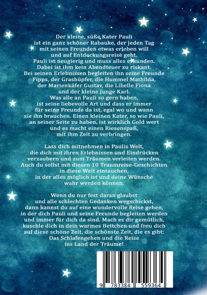 Kater Paulis Abenteuer - Ein Vorlesebuch ab 3 Jahren mit liebevollen Gute-Nacht-Geschichten zum Kuscheln und TräumenTauche ein in die zauberhafte Welt der Gute-Nacht-Geschichten, die Kinder sanft ins Traumland begleiten. "Kater Paulis Abenteuer" ist mehr als ein Vorlesebuch - es ist eine Sammlung liebevoll erzählter Traumreisen, die Geborgenheit schenken, die Fantasie beflügeln und für ruhige Nächte sorgen.Mit Pauli, dem süßen Kater, und seinen Freunden Fipps, Mathilda, Gustav, Fiona und Karl wird jede Geschichte zu einem besonderen Erlebnis voller Freundschaft, Mut und kleinen Wundern.Warum dieses Buch ein Schatz für jedes Kinderzimmer ist- beruhigende Gute-Nacht-Geschichten, die Kindern helfen, den Tag entspannt ausklingen zu lassen und friedlich einzuschlafen- eine wundervolle Möglichkeit, die Eltern-Kind-Bindung zu stärken und gemeinsame Vorleserituale zu schaffen- fantasievolle Abenteuer mit Pauli und seinen Freunden, die zum Träumen einladen und die Vorstellungskraft anregen- wertvolle Botschaften über Freundschaft, Liebe, Mut und Zusammenhalt, die Kinder auf spielerische Weise begleiten- vielseitige Geschichten, die für verschiedene Altersgruppen geeignet sind und auch nach Jahren noch gerne gelesen werden- ideales Geschenk für Geburtstage, Weihnachten oder als liebevolle Überraschung für kleine TräumerDiese Traumreisen sind mehr als Geschichten - sie sind eine Einladung in eine Welt voller Wärme, Geborgenheit und magischer Abenteuer.Jetzt bestellen und gemeinsam mit Kater Pauli wundervolle Einschlafmomente erleben!