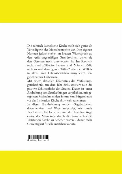 Die römisch-katholische Kirche stellt sich gerne als Verteidigerin der Menschenrechte dar. Ihre eigenen Normen jedoch stehen im krassen Widerspruch zu den verfassungsmäßigen Grundrechten, denen sie den Gesetzen nach unterworfen ist. Im Kirchenrecht sind zölibatäre Frauen und Männer völlig rechtlos und dem "guten Willen" oder der Willkür in allen ihren Lebensbereichen ausgeliefert, vergleichbar wie Leibeigene.