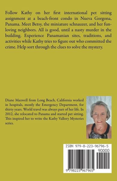Follow Kathy on her first international pet sitting assignment at a beach-front condo in Nueva Gorgona, Panama. Meet Betsy, the miniature schnauzer, and her fun-loving neighbors. All is good, until a nasty murder in the building. Experience Panamanian sites, traditions, and activities while Kathy tries to figure out who committed the crime. Help sort through the clues to solve the mystery.