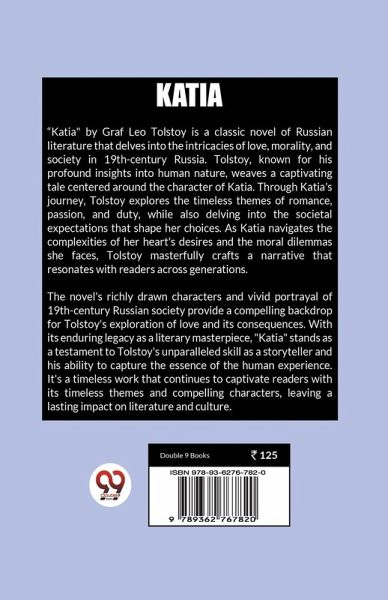 Katia" by Graf Leo Tolstoy is a classic novel of Russian literature that delves into the intricacies of love, morality, and society in 19th-century Russia. Tolstoy, known for his profound insights into human nature, weaves a captivating tale centered around the character of Katia. Through Katia's journey, Tolstoy explores the timeless themes of romance, passion, and duty, while also delving into the societal expectations that shape her choices. As Katia navigates the complexities of her heart's desires and the moral dilemmas she faces, Tolstoy masterfully crafts a narrative that resonates with readers across generations. The novel's richly drawn characters and vivid portrayal of 19th-century Russian society provide a compelling backdrop for Tolstoy's exploration of love and its consequences. With its enduring legacy as a literary masterpiece, "Katia" stands as a testament to Tolstoy's unparalleled skill as a storyteller and his ability to capture the essence of the human experience. It's a timeless work that continues to captivate readers with its timeless themes and compelling characters, leaving a lasting impact on literature and culture.