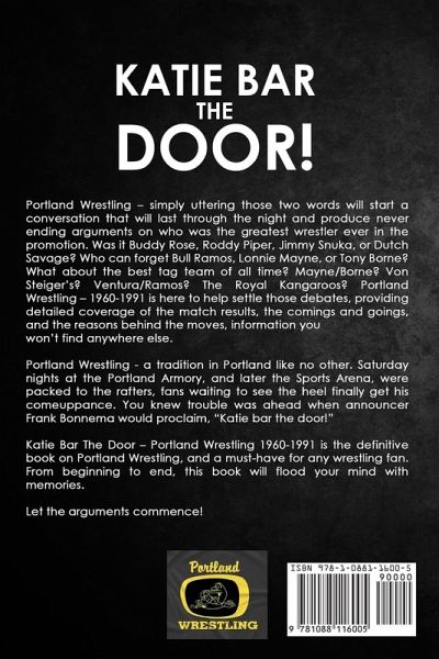 Portland Wrestling - simply uttering those two words will start a conversation that will last through the night and produce never ending arguments on who was the greatest wrestler ever in the promotion. Was it Buddy Rose, Roddy Piper, Jimmy Snuka, or Dutch Savage? Who can forget Bull Ramos, Lonnie Mayne, or Tony Borne? What about the best tag team of all time? Mayne/Borne? Von Steiger's? Ventura/Ramos? The Royal Kangaroos? History of Portland Wrestling is here to help settle those debates, providing detailed coverage of the match results, the comings and goings, and the reasons behind the moves, information you won't find anywhere else.Portland Wrestling - a tradition in Portland like no other. Saturday nights at the Portland Armory, and later the Sports Arena, were packed to the rafters, fans waiting to see the heel finally get his comeuppance. You knew trouble was ahead when announcer Frank Bonnema would proclaim, "Katie bar the door!"Katie Bar The Door - History of Portland Wrestling is the definitive book on Portland Wrestling, and a must-have for any wrestling fan. From beginning to end, this book will flood your mind with memories.