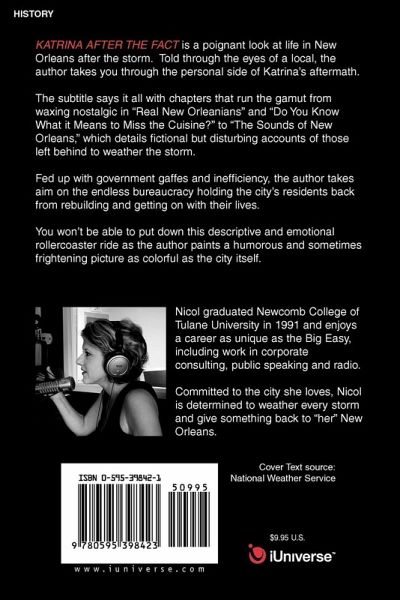 Katrina After the Fact is a poignant look at life in New Orleans after the storm. Told through the eyes of a local, the author takes you through the personal side of Katrina's aftermath. The subtitle says it all with chapters that run the gamut, from waxing nostalgic in "Real New Orleanians" and "Do You Know What it Means to Miss the Cuisine?" to "The Sounds of New Orleans," which details fictional, but disturbing accounts of those left behind to weather the storm. Fed up with government gaffes and inefficiency, the author takes aim on the endless bureaucracy holding the city's residents back from rebuilding and getting on with their lives. You won't be able to put down this descriptive and emotional rollercoaster ride as the author paints a humorous and sometimes frightening picture as colorful as the city itself.