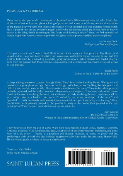This is a book is secretly about love. It doesn't say so, directly, yet it leads us through its many forms using an inspired choice of words: "Scary thought, trains and girlfriends." And when someone leaves a relationship: "Emptiness reliable as a broken bone" followed by: "I am the hollow reflection of your departure." Son of a preacher man and a piano player, growing up in a small town in Central Texas, his dad reading Robert Frost to him, his mother playing Offenbach's Barcarolle which made him cry, acting in one act plays, playing in the All State Band, breaking his leg in football, getting jilted by a cheerleader, he had enough experience at 17 to already be a poet. Yet he waited until middle age, rocked by crisis, reaching for understanding, poetry seemed the smart thing to do. The sensual moments in this book simply rise off the page: "You collected my tears in the teacup of your collarbone." and "It has taken a long time to get here past failures at love, at marriage, but sometimes, after all, there is this accident of grace." Poetry should scare us a little. What poetry affirms, good poetry, is that on the other side of a scare there often surfaces a thread which keeps us pressing forward through angst and the paralyses of sorrow. That life-rope we seek is affirmed by beauty and the rigorous pursuit of truth: In "Fear and Resilience" the protagonist, in a pit of worry, remembers and recovers to her ear her mother's voice which calms the fright she was facing. That discovery could not have happened were it not for facing the problem head on. As Robert Frost says, "The best way out is always through." Watts brings many talents. His subjects range from a birdhouse to a mirror in the hall, each approached with well-trained eyes and a reverence for the complicated journeys of the human spirit. How else could the right words come to interrogate the classical themes of love, loss and mortality? It took great courage to place himself within the spirit of a dying friend and record the illuminations found there as he did in the meditative and unique "Death Sequence." Something new came from that. Thoughtful reflection guided by craft; Watts is well-equipped. Yet, one more quality is essential: a depth of spirit one gains by years of what Socrates calls, "The Examined Life." Being unafraid to approach our angels and our demons candidly as Watts courageously does in this collection, pays off. As Gary Snyder affirms, "To the real work/. . 'What is to be done'."