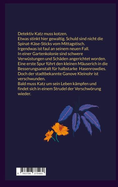 Ein spannendes Abenteuer für kleine Detektive: Ein tierischer Kinderkrimi, der zum Mitfiebern und Spaßhaben einlädt!Der kleine Mäuse-Detektiv Herr Katz muss kotzen. Schuld sind nicht die Spinat-Käse-Sticks vom Mittagsmahl. Etwas stinkt hier gewaltig. Sein Boss, "der Gorilla", beauftragt ihn mit einer neuen heiklen Mission: in der Gartenkolonie "Waldfrieden e.V." sind schwere Verwüstungen und Schäden angerichtet worden. Es herrscht Aufregung im Gartenparadies. Katz und seine Assistentin Maxi, ein cleveres Eichhörnchen, machen sich sofort an die Arbeit. Eine erste Spur führt Katz in die Besserungsanstalt für schwererziehbare Hasenrowdies. Doch der stadtbekannte Kleinganove Langohr ist verschwunden. Während der Untersuchung des einst idyllischen Tatorts trifft Katz auf ein verkohlten Kuhmist und eigenartigen pulverigen Substanz. Was ist hier los im Gartenparadies? Bald muss Katz um sein Leben kämpfen und windet sich im reißerischen Strudel einer mysteriösen Verschwörung.