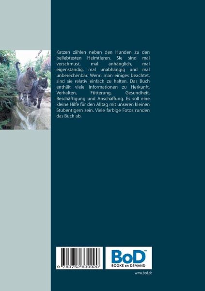 Katzen zählen neben den Hunden zu den beliebtesten Heimtieren. Sie sind mal verschmust, mal unabhängig und mal unberechenbar. Die Zuneigung einer Katze ist nicht so treu ergeben wie die eines Hundes, dafür aber feiner und schmusiger. Wenn man einiges beachtet, sind Katzen relativ einfach zu halten. Was braucht eine Katze? Was ist im Umgang mit ihr zu beachten? Wie kann man sie gesund und artgerecht ernähren? Welche Beschäftigung mögen Katzen? Brauchen Katzen unbedingt Freigang? Diese und viele weitere Fragen beantwortet das Buch. Dabei ist kein allgemeingültiges Regelwerk über die Katzenhaltung entstanden. Das Buch soll vielmehr eine kleine Hilfe für den Alltag mit unseren kleinen Stubentigern sein. Viele farbige Fotos runden das Buch ab.