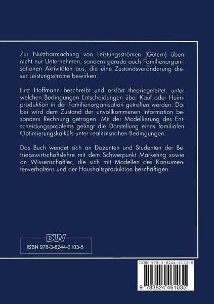 Lutz Hoffmann beschreibt und erklärt theoriegeleitet, unter welchen Bedingungen Entscheidungen über Kauf oder Heimproduktion in der Familienorganisation getroffen werden.