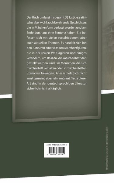 Das Buch umfasst insgesamt 32 lustige, satirische, aber wohl auch belehrende Geschichten, die in Märchenform verfasst wurden und am Ende durchaus eine Sentenz haben. Sie befassen sich mit vielen verschiedenen, aber auch aktuellen Themen. Es handelt sich bei den Akteuren einerseits um Märchenfiguren, die in der realen Welt agieren und einiges verändern, um Realien, die märchenhaft dargestellt werden, und um Menschen, die sich märchenhaft verhalten oder in märchenhaften Szenarien bewegen. Alles ist letztlich nicht ernst gemeint, aber sehr amüsant. Texte dieser Art sind in der deutschsprachigen Literatur sicherlich nicht alltäglich.