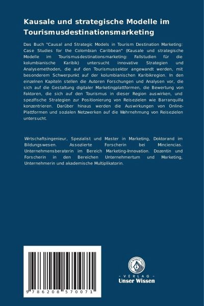 Das Buch "Causal and Strategic Models in Tourism Destination Marketing: Case Studies for the Colombian Caribbean" (Kausale und strategische Modelle im Tourismusdestinationsmarketing: Fallstudien für die kolumbianische Karibik) untersucht innovative Strategien und Analysemethoden, die auf den Tourismussektor angewandt werden, mit besonderem Schwerpunkt auf der kolumbianischen Karibikregion. In den einzelnen Kapiteln stellen die Autoren Forschungen und Analysen vor, die sich auf die Gestaltung digitaler Marketingplattformen, die Bewertung von Faktoren, die sich auf den Tourismus in dieser Region auswirken, und spezifische Strategien zur Positionierung von Reisezielen wie Barranquilla konzentrieren. Darüber hinaus werden die Auswirkungen von Online-Plattformen und sozialen Netzwerken auf die Wahrnehmung von Reisezielen untersucht.