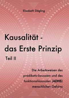 Fachbuch aus dem Jahr 2024 im Fachbereich Psychologie - Kognitive Psychologie, , Sprache: Deutsch, Abstract: Unter dem Haupttitel "KAUSALITÄT - DAS ERSTE PRINZIP" sind zwei Bücher von mir bei GRIN erschienen. Das erste Buch hat den Untertitel "Das Gesetz, die Varianten, das Regelwerk". In ihm wird die Kausalität als Universalgesetz und als Prototyp für Systemgesetze beschrieben. Das zweite, vorliegende Buch trägt den Untertitel "Die Arbeitsweisen des prädikativ-kausalen und des funktional-kausalen (ADHS) menschlichen Gehirns". Was in diesem Buch als Arbeitsweisen beschrieben wird, firmiert derzeit unter der Bezeichnung Informationsverarbeitung. Nur verarbeitet das Gehirn keine Information, sondern unser Wissen über die Welt entsteht mittels der Varianten der Kausalität und ihrer Regeln. Die Arbeitsweise des Gehirns ist nicht gleichbedeutend mit der Funktionsweise, die zum Arbeitsgebiet der Neurowissenschaftler gehört, während die Arbeitsweise in den Zuständigkeitsbereich der Kognitiven Psychologie fällt. Beiden Büchern ist gemeinsam, dass in ihnen die Kausalität als Systemgesetz behandelt wird und als solches in zwei Varianten, prädikativ vs.funktional, vorliegt. Die prädikative Variante wird derzeit auch als Beziehungsverhältnis von Ursache und Wirkung gesehen, weshalb es, aus dieser Perspektive, bisher keine wissenschaftliche Erklärung für die Ursache-Wirkungs-Beziehung gibt. Die zweite, bisher unbekannte Variante unterliegt der Arbeitsweise des Gehirns einer Minderheit, von der behauptet wird, sie litte deshalb an der ADHS genannten Störung, für die es bislang ebenfalls keine Erklärung gibt. Im ersten Teil des vorliegenden Buches geht es um verschiedene Sachverhalte, die in einem Zusammenhang mit den Arbeitsweisen menschlicher Gehirne stehen. Im zweiten Teil geht es um den Perspektivenwechsel. In ihm werden zunächst das Gesetz sowie die beiden Varianten und die dazugehörigen, aber in der Psychologie anders verwendeten beiden Regeln erklärt: Das Gesetz der Kausalität wird als Systemgesetz beschrieben und ist in seinen beiden Varianten die Grundlage für die Existenz der Welt, in der wir leben. Es folgt abschließend der dritte Teil, er betrifft die Leistungen unseres Gehirns und damit die Art und Weise, in der unser Wissen innerhalb dreier Perioden erzeugt und von uns erfahren wird.