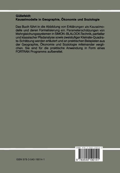 Das Buch bietet eine Einführung in die empirische Überprüfung mehrdimensionaler kausaler Erklärungen, ihre Abbildung als Kausalmodelle und die notwendigen Schritte zu ihrer Formalisierung. Dabei wird immer von leicht verständlichen inhaltlichen Fragestellungen ausgegangen, an denen auch aufgezeigt wird, welche Probleme auftreten, wenn Einflußgrößen untereinander durch gemeinsame Faktoren verbunden sind. Aus der propädeutischen Darstellung von einfacher und multipler Korrelation und Regression sowie der partiellen Korrelation wird in anschaulicher Weise die partielle Pfadanalyse hergeleitet, eine mögliche Lösung bei Multikollinearität von Einflußgrößen. Alle gängigen analytischen Modelle zur Parameterschätzung von rekursiven und nichtrekursiven bzw. interdependenten Systemen werden erläutert: SIMON-BLALOCK-Technik, partielle und klassische Pfadanalyse sowie die zweistufige Kleinste-Quadrate-Schätzung. Das Buch wendet sich einerseits an Studierende der Fachgebiete Geographie, Ökonomie und Soziologie, in denen konkrete Forschungsfragen zur Analyse komplexer Wirkungsgefüge behandelt werden. Andererseits ist es für den Leserkreis gedacht, der die analytischen Modelle anwenden möchte. Sie werden nämlich nicht nur erläutert, sondern sind in Form eines FORTRAN Programms für die praktische Anwendung erschlossen. Hierin kommt einmal mehr das Bemühen des Autors zum Ausdruck, die mathmatischen Vorkenntnisse und Anforderungen so gering wie möglich zu halten.
