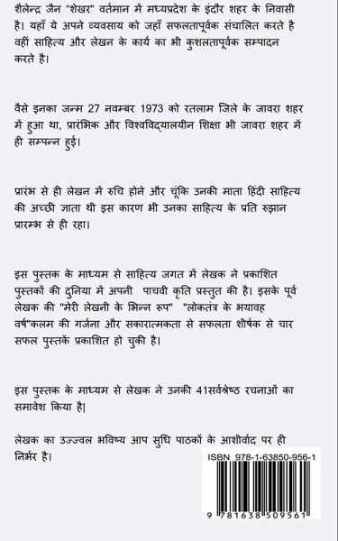Manav man ki anubhuti jab shabdo ke madhyam se ras or chandh se alankrat ho kar kagaj par utarti he to vah kavita, gajal, geet ya chopaiyo ka roop dharan kar kavyanubhuti ban jati he Avyavasthao par jab riday dravit ho kar hunkar bharne lagta he to oj kavya ho kata he or vahi riday jab kisi rupsi ke sondarya ka varnan karta he to shringar ka geet ban jana he ya najakat roop liye vah varnan gajal ho jati he Meri is krati me meri 41 sarvshreshth rachnao ka mene samavesh kiya he jo aap sudhijano ko avashya hi anandit karega is pustak ko ap meri anya kratiyo ki hi tarah prem denge iska mujhe purn vishwash he In panktiyo ke sath yah kavyanubhuti aap sabhi ko samarpit... Meri kalam se chingaria bolti he Hukumato ki sari pole kholti he Lekhni jab sach ka aaina dikhati he Tab unke anucharo ki besharmi bolti he -Shailendra jain ""shekhar""