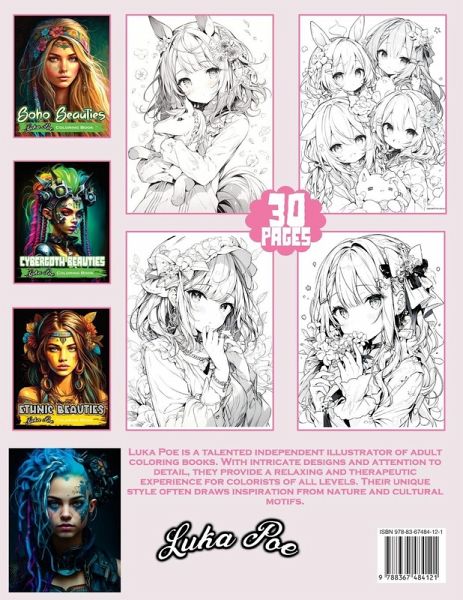 Immerse yourself in the enchanting universe of "Kawaii Girls Coloring Book" , where every page is a gateway to a world brimming with charm, creativity, and the irresistible allure of kawaii culture. This coloring book is not just an activity; it's an invitation to explore a realm where cute and charming illustrations come to life through your artistic expression. Carefully Curated Illustrations: Enjoy a selection of delightful girls dressed in a variety of whimsical outfits, offering endless opportunities for relaxation and enjoyment.Perfect for All Skill Levels: Whether you're a novice just discovering the joy of coloring or an experienced artist seeking intricate designs, you'll find pages that inspire and captivate.Variety of Designs: From simple and sweet to intricately detailed, the designs cater to colorists of all levels, ensuring that everyone can find something to enjoy. Thoughtfully Crafted: Each illustration is designed to transport you to a world where every detail exudes cuteness, from the delicate patterns on the clothing to the expressive faces of the characters.A Creative Escape: More than just a pastime, this book offers a way to unwind and engage with the delightful aesthetic of Japanese kawaii culture.Perfect for All Ages: Whether you're a child discovering the magic of colors for the first time or an adult seeking a soothing, creative outlet, this book is a perfect companion. Let the pages of this book guide you on a journey of creativity, where every stroke of color adds a new dimension to these charming characters, making each illustration uniquely yours.