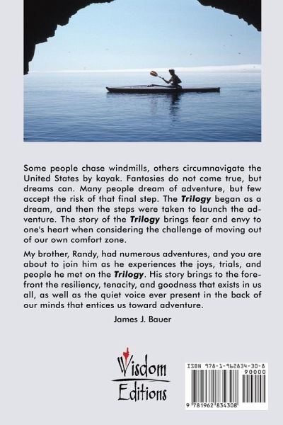 Some people chase windmills, others circumnavigate the United States by kayak. Fantasies do not come true, but dreams can. Many people dream of adventure, but few accept the risk of that final step. The Trilogy began as a dream, and then the steps were taken to launch the adventure. The story of the Trilogy brings fear and envy to one's heart when considering the challenge of moving out of our own comfort zone. My brother, Randy, had numerous adventures, and you are about to join him as he experiences the joys, trials, and people he met on the Trilogy. His story brings to the forefront the resiliency, tenacity, and goodness that exists in us all, as well as the quiet voice ever present in the back of our minds that entices us toward adventure. - James J. Bauer