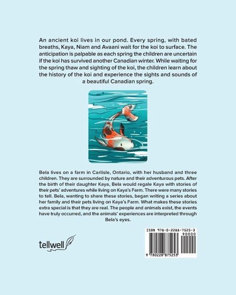 An ancient koi lives in our pond. Every spring, with bated breaths, Kaya, Niam and Avaani wait for the koi to surface. The anticipation is palpable as each spring the children are uncertain if the koi has survived another Canadian winter. While waiting for the spring thaw and sighting of the koi, the children learn about the history of the koi and experience the sights and sounds of a beautiful Canadian spring.