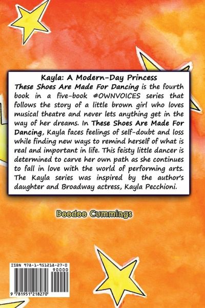 Kayla: A Modern-Day Princess--These Shoes Are Made For Dancing is the fourth book in a five-book #OWNVOICES series that follows the story of a little brown girl who loves musical theatre and never lets anything get in the way of her dreams. In These Shoes Are Made For Dancing, Kayla faces feelings of self-doubt and loss while finding new ways to remind herself of what is real and important in life. This feisty little dancer is determined to carve her own path as she continues to fall in love with the world of performing arts. The Kayla series was inspired by the author's daughter and Broadway actress, Kayla Pecchioni.