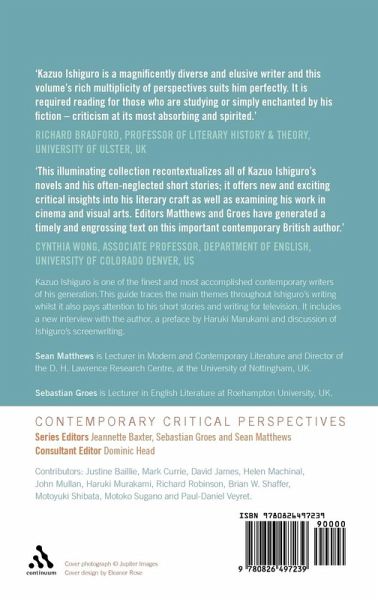 Kazuo Ishiguro is one of the finest and most accomplished contemporary writers of his generation. The short story author, television writer and novelist, included twice in Granta's list of Best Young British Writers, has over the past twenty-five years produced a body of work which is just as critically-acclaimed as it is popular with the general public. Like the writings of Ian McEwan, Kazuo Ishiguro's work is concerned with creating discursive platforms for issues of class, ethics, ethnicity, nationhood, place, gender and the uses and problems surrounding artistic representation. As a Japanese immigrant who came to Great Britain in 1960, Ishiguro has used his unique position and fine intellectual abilities to contemplate what it means to be British in the contemporary era. This guide traces the main themes throughout Ishiguro's writing whilst it also pays attention to his short stories and writing for television. It includes a new interview with the author, a preface by Haruki Murakami and discussion of James Ivory's adaptation of The Remains of the Day.