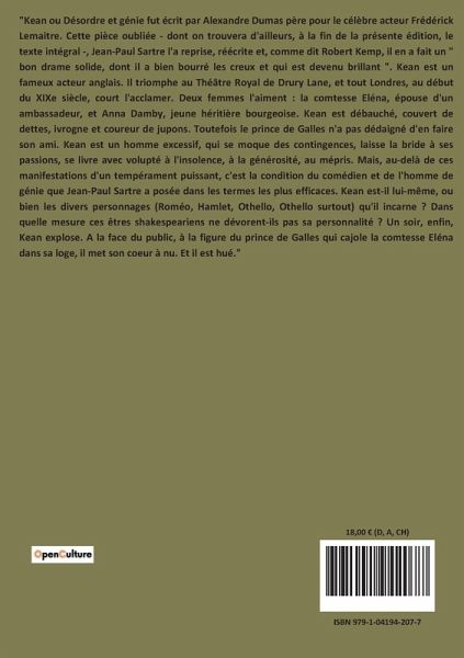 Kean, ou Désordre et Génie est une pièce de théâtre en cinq actes et six tableaux d'Alexandre Dumas, créée le 31 août 1836 au théâtre des Variétés, avec Frédérick Lemaître dans le rôle-titre. Elle s'inspire de la vie du comédien britannique Edmund Kean (1787-1833). Une version révisée a été réalisée par Jean-Paul Sartre en 1953.