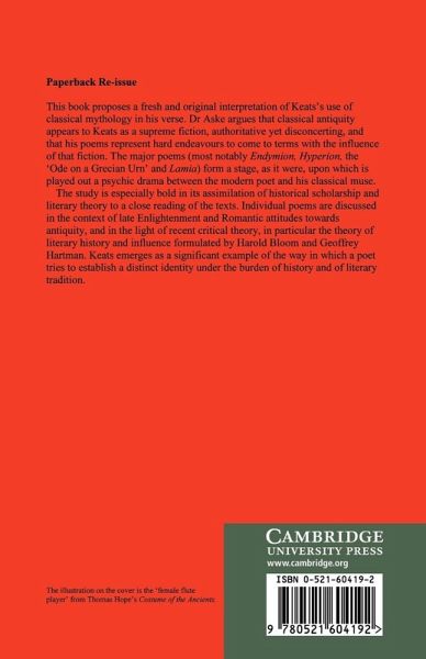 This book proposes a fresh and original interpretation of Keats' use of classical mythology in his verse. Dr Aske argues that classical antiquity appears to Keats as a supreme fiction, authoritative yet disconcerting, and his poems represent hard endeavours to come to terms with the influence of that fiction. The major poems (most notably Endymion, Hyperion, the Ode on a Grecian Urn and Lamia) form a stage, as it were, upon which is played out a psychic drama between the modern poet and his classical muse. The study is especially bold in its assimilation of historical scholarship and literary theory to a close reading of the texts. Individual poems are discussed in the context of late Enlightenment and Romantic attitudes towards antiquity and in the light of recent critical theory, in particular the theory of literary history and influence formulated by Harold Bloom and Geoffrey Hartman. Keats emerges as a significant example of the way in which a poet tries to establish a distinct identity under the burden of history and of literary tradition.