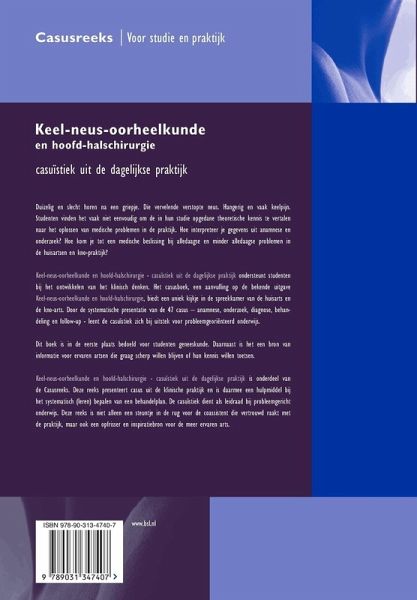 Duizelig en slecht horen na een griepje. Die vervelende verstopte neus. Hangerig en vaak keelpijn. Studenten vinden het vaak niet eenvoudig om de in hun studie opgedane theoretische kennis te vertalen naar het oplossen van medische problemen in de praktijk. Hoe interpreteer je gegevens uit anamnese en onderzoek? Hoe kom je tot een medische beslissing bij alledaagse en minder alledaagse problemen in de huisartsen¿ en knöpraktijk?Keel¿neus¿oorheelkunde en hoofd¿halschirurgie ¿casuïstiek uit de dagelijkse praktijk ondersteunt studenten bij het ontwikkelen van het klinisch denken. Het casusboek, een aanvulling op de bekende uitgave Keel¿neus¿oorheelkunde en hoofd¿halschirurgie, biedt een uniek kijkje in de spreekkamer van de huisarts en knöarts. Door de systematische presentatie van de 47 casus ¿ anamnese, onderzoek, diagnose, behandeling en follow¿up ¿ leent de casuïstiek zich bij uitstek voor probleemgeoriënteerd onderwijs.Keel¿neus¿oorheelkunde en hoofd¿halschirurgie casuïstiek uit de dagelijkse praktijk is onderdeel van de Casusreeks. Deze reeks presenteert casus uit de klinische praktijk en is daarmee een hulpmiddel bij het systematisch (leren) bepalen van een behandelplan. De casuïstiek dient als leidraad bij probleemgericht onderwijs. Deze reeks is niet alleen een steuntje in de rug voor de coassistent die vertrouwd raakt met de praktijk, maar ook een opfrisser en inspiratiebron voor de meer ervaren arts.