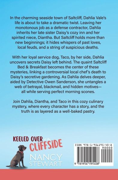 Gilmore Girls meets Murder, She Wrote in this fast-paced culinary cozy (with a dog you'll want to adopt yourself!) In the charming seaside town of Saltcliff, Dahlia Vale's life is about to take a dramatic twist. Leaving her monotonous job as a defense contractor, Dahlia inherits her late sister Daisy's cozy inn and her spirited niece, Diantha. But Saltcliff holds more than new beginnings; it hides whispers of past loves, local feuds, and a string of suspicious deaths. With her loyal service dog, Taco, by her side, Dahlia uncovers secrets Daisy left behind. The quaint Saltcliff Bed & Breakfast becomes the center of these mysteries, linking a controversial local chef's death to Daisy's secretive gardening. As Dahlia delves deeper, aided by Detective Owen Sanderson, she untangles a web of betrayal, blackmail, and hidden motives-all while serving perfect morning scones. Join Dahlia, Diantha, and Taco in this cozy culinary mystery, where every character has a story, and the truth is as layered as a well-baked pastry.