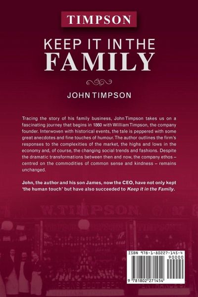 Tracing the story of his family business, John Timpson takes us on a fascinating journey that begins in 1860 with William Timpson, the company founder. Interwoven with historical events, the tale is peppered with some great anecdotes and fine touches of humour. The author outlines the firm's responses to the complexities of the market, the highs and lows in the economy and, of course, the changing social trends and fashions. Despite the dramatic transformations between then and now, the company ethos - centred on the commodities of common sense and kindness - remains unchanged. John, the author and his son James, now the CEO, have not only kept 'the human touch' but have also succeeded to Keep it in the Family.