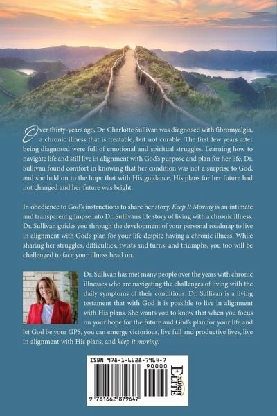 Over thirty-years ago, Dr. Charlotte Sullivan was diagnosed with fibromyalgia, a chronic illness that is treatable, but not curable. The first few years after being diagnosed were full of emotional and spiritual struggles. Learning how to navigate life and still live in alignment with God's purpose and plan for her life, Dr. Sullivan found comfort in knowing that her condition was not a surprise to God, and she held on to the hope that with His guidance, His plans for her future had not changed and her future was bright. In obedience to God's instructions to share her story, Keep It Moving is an intimate and transparent glimpse into Dr. Sullivan's life story of living with a chronic illness. Dr. Sullivan guides you through the development of your personal roadmap to live in alignment with God's plan for your life despite having a chronic illness. While sharing her struggles, difficulties, twists and turns, and triumphs, you too will be challenged to face your illness head on. Dr. Sullivan has met many people over the years with chronic illnesses who are navigating the challenges of living with the daily symptoms of their conditions. Dr. Sullivan is a living testament that with God it is possible to live in alignment with His plans. She wants you to know that when you focus on your hope for the future and God's plan for your life and let God be your GPS, you can emerge victorious, live full and productive lives, live in alignment with His plans, and keep it moving.
