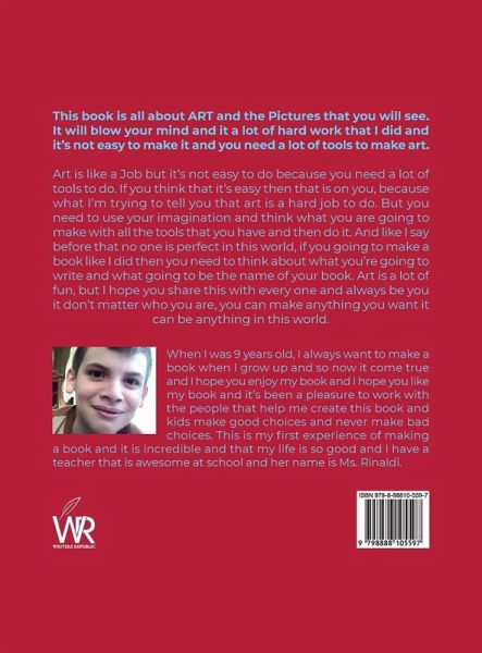 This book is all about ART and the Pictures that you will see. It will blow your mind and it a lot of hard work that I did and it's not easy to make it and you need a lot of tools to make art. Art is like a Job but it's not easy to do because you need a lot of tools to do. If you think that it's easy then that is on you, because what I'm trying to tell you that art is a hard job to do. But you need to use your imagination and think what you are going to make with all the tools that you have and then do it. And like I say before that no one is perfect in this world, if you going to make a book like I did then you need to think about what you're going to write and what going to be the name of your book. Art is a lot of fun, but I hope you share this with every one and always be you it don't matter who you are, you can make anything you want it can be anything in this world.