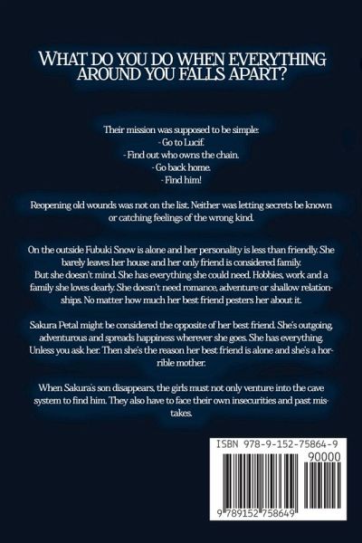 WHAT DO YOU DO WHEN EVERYTHING AROUND YOU FALLS APART? Their mission was supposed to be simple:Go to Lucif. Find out who owns the chain. Go back home. Find him! Reopening old wounds was not on the list. Neither was letting secrets be known or catching feelings of the wrong kind. On the outside Fubuki Snow is alone and her personality is less than friendly. She barely leaves her house and her only friend is considered family. But she has everything she needs. Hobbies, work and a family she loves dearly. She doesn't need romance, adventure or shallow relationships. No matter how much her best friend pesters her about it. Sakura Petal might be considered the opposite of her best friend. She's outgoing, adventurous and spreads happiness wherever she goes. She has everything. Unless you ask her. Then she's the reason her best friend is alone and she's a horrible mother. When Sakura's son disappears, the girls must not only venture into the cave system to find him. They also have to face their own insecurities and past mistakes.