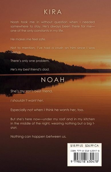 Kira Noah took me in without question when I needed somewhere to stay. He's always been there for me-one of the only constants in my life. He makes me feel safe. Not to mention, I've had a crush on him since I was twelve. There's only one problem. He's my best friend's dad. Noah She's my son's best friend. I shouldn't want her. Especially not when I think he wants her, too. But she's here now-under my roof and in my kitchen in the middle of the night, wearing nothing but a big t-shirt. Nothing can happen between us.
