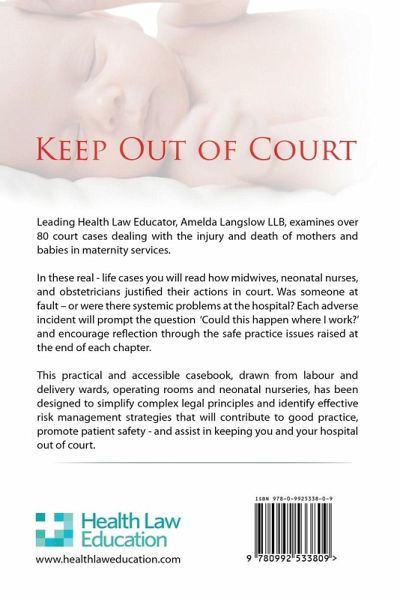 Keep Out of Court examines over 85 real- life court cases dealing with the injury and death of mothers and babies in maternity services. You will read how midwives, neonatal nurses, and obstetricians justified their actions in court. Was someone at fault -or were there systemic problems at the hospital? Each adverse incident will prompt the question 'Could this happen where I work?' and encourage reflection through the safe practice issues raised at the end of each chapter. This practical and accessible casebook, drawn from labour and delivery wards, operating rooms and neonatal nurseries, has been designed to simplify complex legal principles and identify effective risk management strategies that will ensure good practice, promote patient safety - and keep you and your hospital out of court.