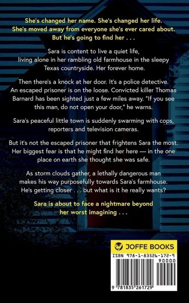 She's changed her name. She's changed her life. She's moved away from everyone she's ever cared about. But he's going to find her . . . Sara is content to live a quiet life, living alone in her rambling old farmhouse in the sleepy Texas countryside. Her forever home. Then there's a knock at her door. It's a police detective. An escaped prisoner is on the loose. Convicted killer Thomas Barnard has been sighted just a few miles away. "If you see this man, do not open your door," he warns. Sara's peaceful little town is suddenly swarming with cops, reporters and television cameras. But it's not the escaped prisoner that frightens Sara the most. Her biggest fear is that he might find her here - in the one place on earth she thought she was safe. As storm clouds gather, a lethally dangerous man makes his way purposefully towards Sara's farmhouse. He's getting closer . . . but what is it he really wants? Sara is about to face a nightmare beyond her worst imagining . . .