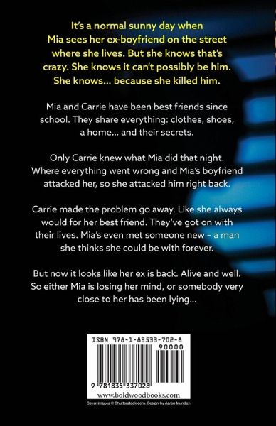 She knows your darkest secret... Can she keep it? It's a normal sunny day when Mia sees her ex-boyfriend on the street where she lives. But she knows that's crazy. She knows it can't possibly be him. She knows... because she killed him. Mia and Carrie have been best friends since school. They share everything: clothes, shoes, a home... and their secrets. Only Carrie knew what Mia did that night. Where everything went wrong and Mia's boyfriend attacked her, so she attacked him right back. Carrie made the problem go away. Like she always would for her best friend. They've got on with their lives. Mia's even met someone new - a man she thinks she could be with forever. But now it looks like her ex is back. Alive and well. So either Mia is losing her mind, or somebody very close to her has been lying...