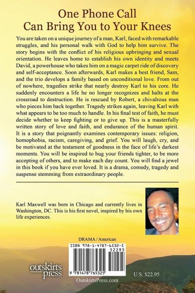 This book is like no other you have read. You will find it intriguing and inspirational. You are taken on a unique journey of a man, Karl, faced with remarkable struggles, and his personal walk with God to help him survive. The story begins with the conflict of his religious upbringing and sexual orientation. Raised in a traditional Baptist faith which vehemently objects gays, he struggles to find meaning in life beginning at just eight years old. Pressure from his family to be the "perfect" child compounds his struggle, leaving him broken and confused. In an ironic parallel of homophobia and bigotry, Karl seeks acceptance for being gay as his parents once sought acceptance for being African American. He decides to leave home to establish his own identity and meets David, a powerhouse who takes him on a magic carpet ride of discovery and self-acceptance. Wise men say only fools rush in, but Karl doesn't listen. He is hungry for love and adventure but ends up with a little more than he bargained for. David's mix of sugar and spice takes Karl's breath away, and he builds his life around the most unique man he has ever met. Soon afterwards, Karl makes a best friend, Sam, and the trio develops a family based on unconditional love. The tie that binds them is their hunger to be loved simply as they are and not what others want them to be. What makes their story special is that they learn to love themselves notwithstanding the rejection of others and without the support of their families. From out of nowhere, tragedies strike that nearly destroy Karl to his core. He suddenly encounters a life he no longer recognizes and halts at the crossroad to destruction. Completely on his own, he struggles to reconcile his past from his future. The only thing he has is the faith he fostered as a little boy - which still conflicts with his adult identity. He is rescued by Robert, a chivalrous man. Like a broken doll and a damaged bird, Robert delicately pieces Karl back toge