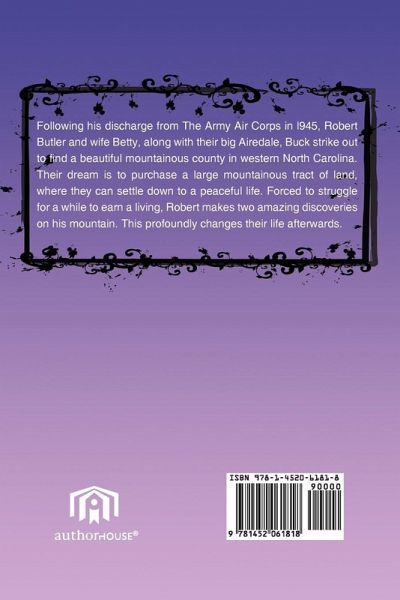 Following his discharge from The Army Air Corps in l945, Robert Butler and wife Betty, along with their big Airedale, Buck strike out to find a beautiful mountainous county in western North Carolina. Their dream is to purchase a large mountainous tract of land, where they can settle down to a peaceful life. Forced to struggle for a while to earn a living, Robert makes two amazing discoveries on his mountain. This profoundly changes their life afterwards.
