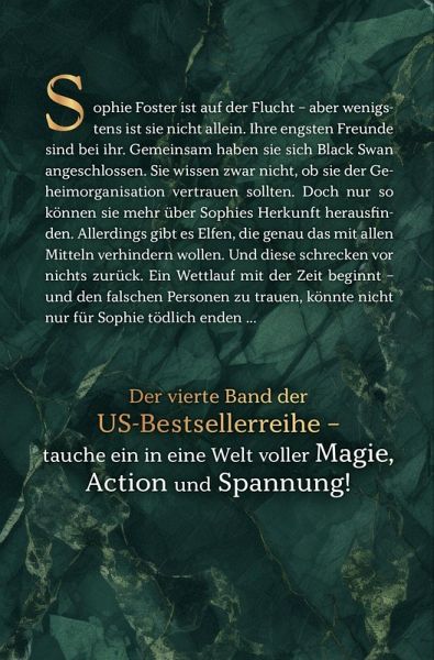Sophie Foster ist auf der Flucht - aber wenigstens ist sie nicht allein. Ihre engsten Freunde sind bei ihr. Gemeinsam haben sie sich Black Swan angeschlossen. Sie wissen zwar nicht, ob sie dieser Geheimorganisation vertrauen können. Doch nur so können sie mehr über Sophies Herkunft herausfinden. Allerdings gibt es Elfen, die genau das mit allen Mitteln verhindern wollen. Und diese schrecken vor nichts zurück. Ein Wettlauf mit der Zeit beginnt - und den falschen Personen zu trauen, könnte nicht nur für Sophie tödlich enden ...