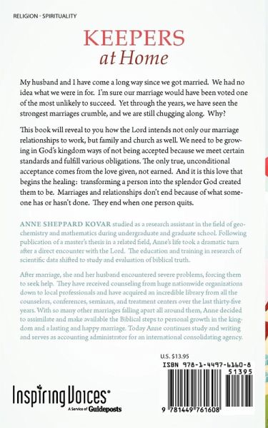 My husband and I have come a long way since we got married. We had no idea what we were in for. I'm sure our marriage would have been voted one of the most unlikely to succeed. Yet through the years, we have seen the strongest marriages crumble, and we are still chugging along. Why? This book will reveal to you how the Lord intends not only our marriage relationships to work, but family and church as well. We need to be growing in God's kingdom ways of not being accepted because we meet certain standards and fulfill various obligations. The only true, unconditional acceptance comes from the love given, not earned. And it is this love that begins the healing: transforming a person into the splendor God created them to be. Marriages and relationships don't end because of what someone has or hasn't done. They end when one person quits.