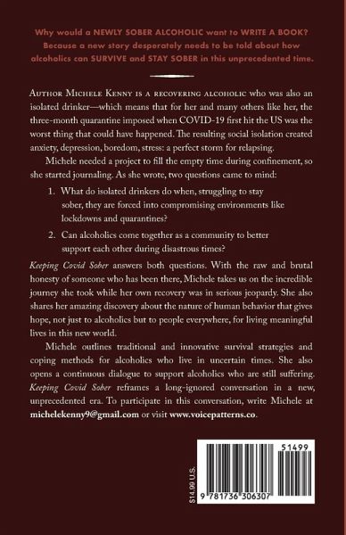 Why would a newly sober alcoholic want to write a book? Because a new story desperately needs to be told about how alcoholics can survive and stay sober in this unprecedented time. Author Michele Kenny is a recovering alcoholic who was also an isolated drinker-which means that for her and many others like her, the three-month quarantine imposed when COVID-19 first hit the US was the worst thing that could have happened. The resulting social isolation created anxiety, depression, boredom, and stress: a perfect storm for relapsing. Michele needed a project to fill the empty time during confinement, so she started journaling (not one of her favorite pastimes!). She chronicled her thoughts and feelings during the self-quarantine in real time and recorded the different relapse prevention strategies she used to fight for her sobriety. And what a battle it was! As she wrote, two main questions came to mind: 1. What do isolated drinkers do when, struggling to stay sober, they are forced into compromising environments like lockdowns and quarantines? 2. Can alcoholics come together as a community to better support each other during disastrous times? Keeping Covid Sober answers both questions. Using a unique and creative blend of metaphor, irony, and personification (she actually makes both the virus and alcohol come to life as make-believe beings who stayed with her in her home during the quarantine), Michele takes us on her incredible journey, exposing the misery and hardships she dealt with during the times when her own recovery was in serious jeopardy, and uses this book to open a continuous dialogue to support alcoholics and others who are still suffering. Michele also defines a new term, Dual Despondency: the rise in mental and emotional health issues like anxiety, stress, depression, domestic violence, child abuse, alcoholism and other substance use disorders, suicide, and PTSD that run parallel with and are a direct result of COVID-19. These problems cannot be solved with a vaccination. Just like alcoholics, these individuals will need help and support even after the virus is conquered. With the raw and brutal honesty of someone who has been there, Michele takes us on the incredible journey she took while her own recovery was in serious jeopardy. She outlines traditional and innovative survival strategies and relapse prevention methods for alcoholics who live in uncertain times. And she shares her amazing discovery about the nature of human behavior that gives hope, not just to alcoholics but to people everywhere, for living meaningful lives in this new world. For Michele, surviving the first wave of the pandemic came down to a narrow choice: either start writing or start drinking. This book is the choice she made. Keeping Covid Sober reframes a long-ignored conversation for all those facing similar challenges in a new, unprecedented era.
