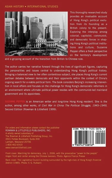 This thoroughly researched study provides an invaluable account of Hong Kong's political evolution from its founding as a British colony to the present. Exploring the interplay between colonial, capitalist, communist, and democratic forces in shaping Hong Kong's political institutions and culture, Suzanne Pepper offers a fresh perspective on the territory's development and a gripping account of the transition from British to Chinese rule. The author carries her narrative forward through the lives of significant figures, capturing the personalities and issues central to understanding Hong Kong's political history. Bringing a balanced view to her often contentious subject, she places Hong Kong's current partisan debates between democrats and their opponents within the context of China's ongoing search for a viable political form. The book considers Beijing's increasing intervention in local affairs and focuses on the challenge for Hong Kong's democratic reformers in an environment where ultimate political power resides with the communist-led mainland government and its appointees.