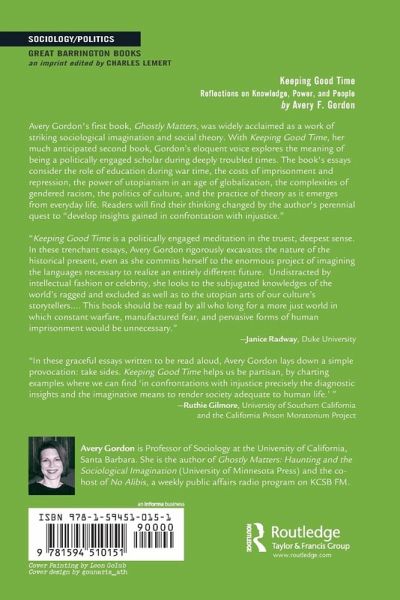Introduction Keeping Good Time Part I Education During Wartime Chapter 1 Wartime Research: The Front Lines Chapter 2 War Machines and Washing Machines Chapter 3 On Education During Wartime Chapter 4 War on Iraq? Part II Face Up to What's Killing You Chapter 5 Going Inside: The Prison Research Visit Chapter 6 We the People Chapter 7 Globalism and the Prison Industrial Complex: An Interview with Angela Davis Chapter 8 "Face Up to What's Killing You": Fear and the Prison Industrial Complex Chapter 9 A Love Story Part III Making a Difference Chapter 10 Alternative Graduation Chapter 11 Sociology After Reconstruction Chapter 12 Twenty-Two Theses on Social Constructionism Chapter 13 Theory and Justice Chapter 14 Making a Difference: Women's Studies in the Academy Chapter 15 Theses on Teaching Marx Chapter 16 Some Thoughts on the Utopian Chapter 17 An Anthropology of Marxism Part IV No Alibis Chapter 18 State of the Art Chapter 19 Will this Election Matter? Chapter 20 Corporate Multiculturalism Chapter 21 More on Positive and Negative Images: The Case of Kara Walker, Artist Chapter 22 The Sledgehammer and the Dagger: A Conversation Between Leon Golub and Avery Gordon Chapter 23 Wish Upon a Star Chapter 24 "No Alibis": A Community Radio Collaboration Chapter 25 Something More Powerful Than Skepticism