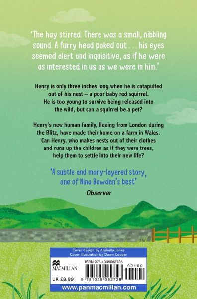 Keeping Henry is a heartwarming story about a cheeky squirrel set during World War Two by Nina Bawden, the beloved author of Carrie's War. Perfect for animal lovers of all ages. 'One of Nina Bawden's best' - The Observer 'The hay stirred. There was a small nibbling sound. A furry head poked out . . . his eyes seemed alert and inquisitive, as if he were as interested in us as we were in him.' Henry is only three inches long when he is catapulted out of his nest - a poor baby red squirrel. He is too young to survive being released into the wild, but can a squirrel be a pet? Henry's new human family, fleeing from London during the Blitz, have made their home on a farm in Wales. Can Henry, who makes nests out of their clothes and runs up the children like they are trees, help them to settle into their new life?