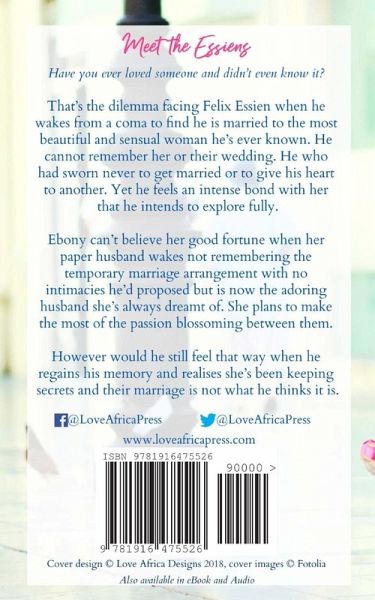 Have you ever loved someone and didn't even know it? That's the dilemma facing Felix Essien when he wakes from a coma to find he is married to the most beautiful and sensual woman he's ever known. He cannot remember her or their wedding. He who had sworn never to get married or to give his heart to another. Yet he feels an intense bond with her that he intends to explore fully. Ebony can't believe her good fortune when her paper husband wakes not remembering the temporary marriage arrangement with no intimacies he'd proposed but is now the adoring husband she's always dreamt of. She plans to make the most of the passion blossoming between them. However would he still feel that way when he regains his memory and realises she's been keeping secrets and their marriage is not what he thinks it is.