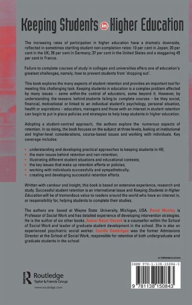 This text examines the issues surrounding student drop-outs and presents a practical guide to identifying reasons for drop out and developing solutions to the problem of retaining students in higher education.