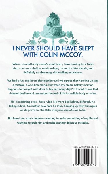 I never should have slept with Colin McCoy. When I moved to my sister's small town, I was looking for a fresh start-no more shallow relationships, no snotty fake friends, and definitely no charming, dirty-talking musicians. We had a fun, red-hot night together and we agreed that hooking up was a mistake, a one-time thing. But when my dream bakery location happens to be right next door to his bar, every day I'm forced to see that chiseled jawline and remember the feel of his incredible body on mine. No. I'm starting over. I have rules. No more bad habits, definitely no falling in love. No matter how hard he tries, hooking up with him again would prove I'm the flake everyone expects me to be. But here I am, stuck between wanting to make something of my life and wanting to grab him and make another delicious mistake.