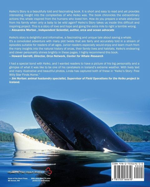 What happened to Keiko the Orca, Star of the Movie Free Willy? Learn the story behind the story. Readers experience important moments in Keiko's journey, his life and near death in Mexico City, his rehabilitation at the Oregon Coast Aquarium, his further recovery in Iceland, and his surprising decision to swim to Norway. A celebration with gorgeous photos and lively details of Keiko and the heroes who went above and beyond to return the Free Willy star safely to his home waters and freedom. Keiko's rescue and rehabilitation continue to encourage us to be good caretakers of the oceans and the creatures that call it home. What people are saying:"Many fans want to know the entire story. That's what Author, Linda Moore Kurth has delivered with her updated and beautiful edition." A captivating read for kids, their families, and fans of all ages! Dive into this heartwarming story today!